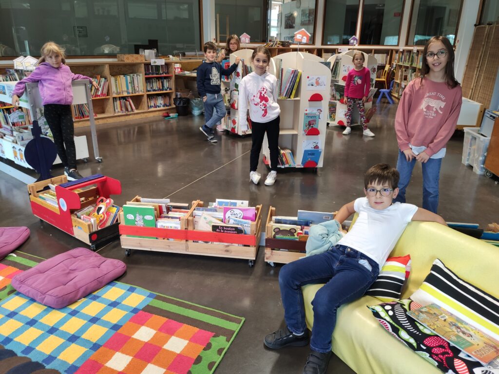 Des bénévoles et une animatrice accompagnent les enfants dans le choix, l’emprunt et le retour des livres de la bibliothèque de l’Ensemble éducatif des Côtes (Vezon).